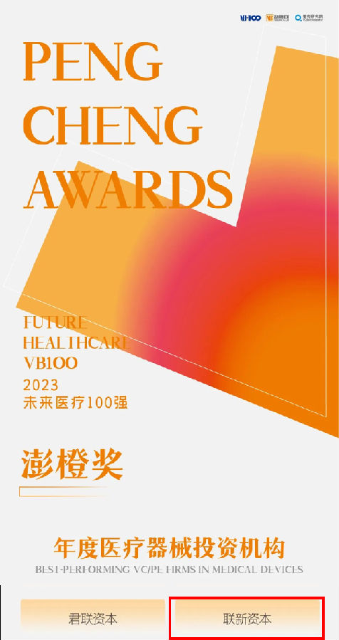 2023年第七屆未來醫(yī)療100強(qiáng)大會(huì)于5月5日正式啟幕,于5月6日晚的百強(qiáng)頒獎(jiǎng)晚宴上發(fā)布了2023年未來醫(yī)療100強(qiáng)榜單,聯(lián)新資本榮膺「澎橙獎(jiǎng)·年度醫(yī)療器械投資機(jī)構(gòu)」榮譽(yù)。